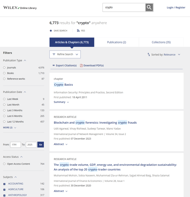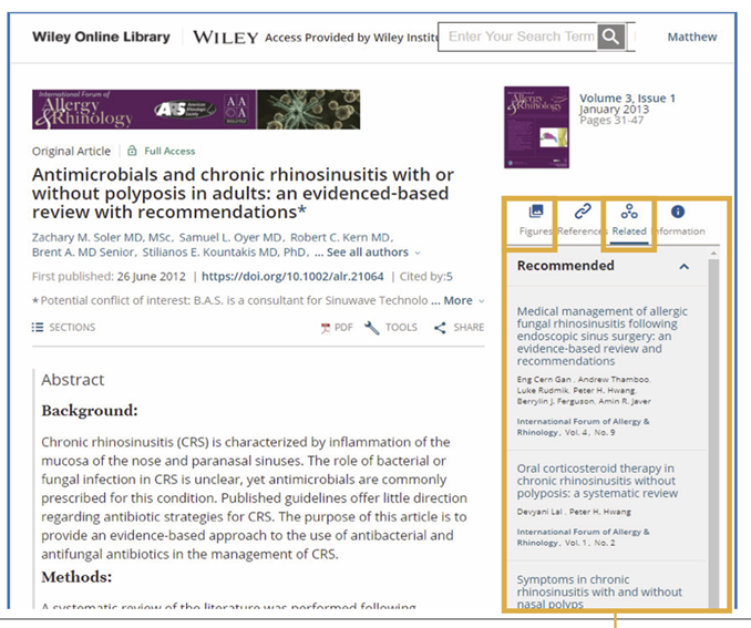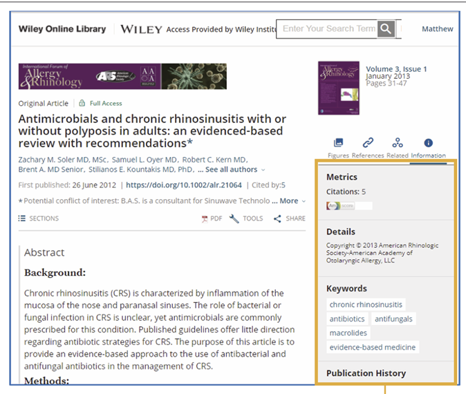 After selecting a journal article, access the abstract, bibliographic details, and links to full content.